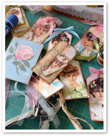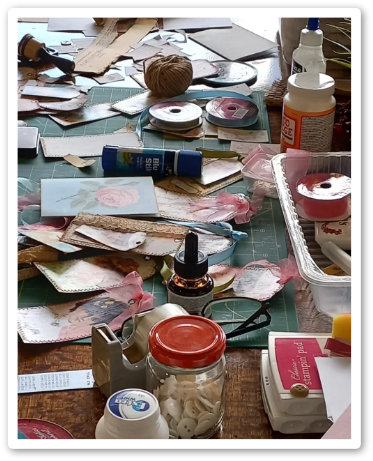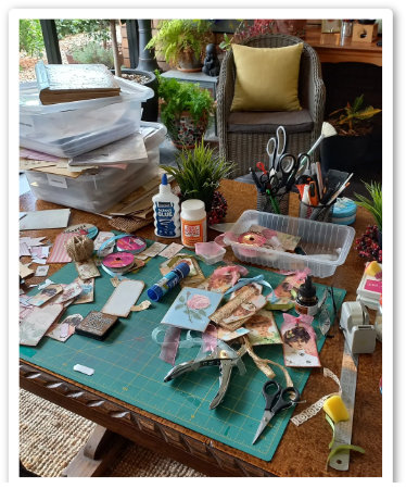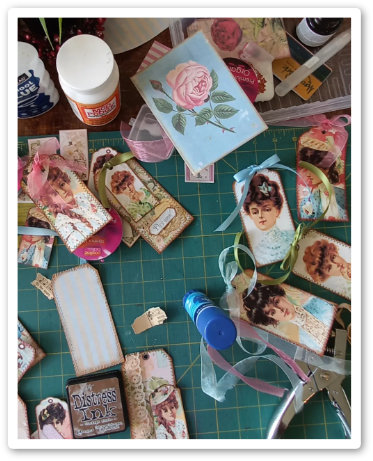 I wish I was one of those calm, serene, methodical, ASMR type crafters. No I’m more the manic, messy, cursing type, with everything but the kitchen sink ending up on the table. I’m only making a few tags 🤣 Anyway this is me having fun with the Ladies 😃