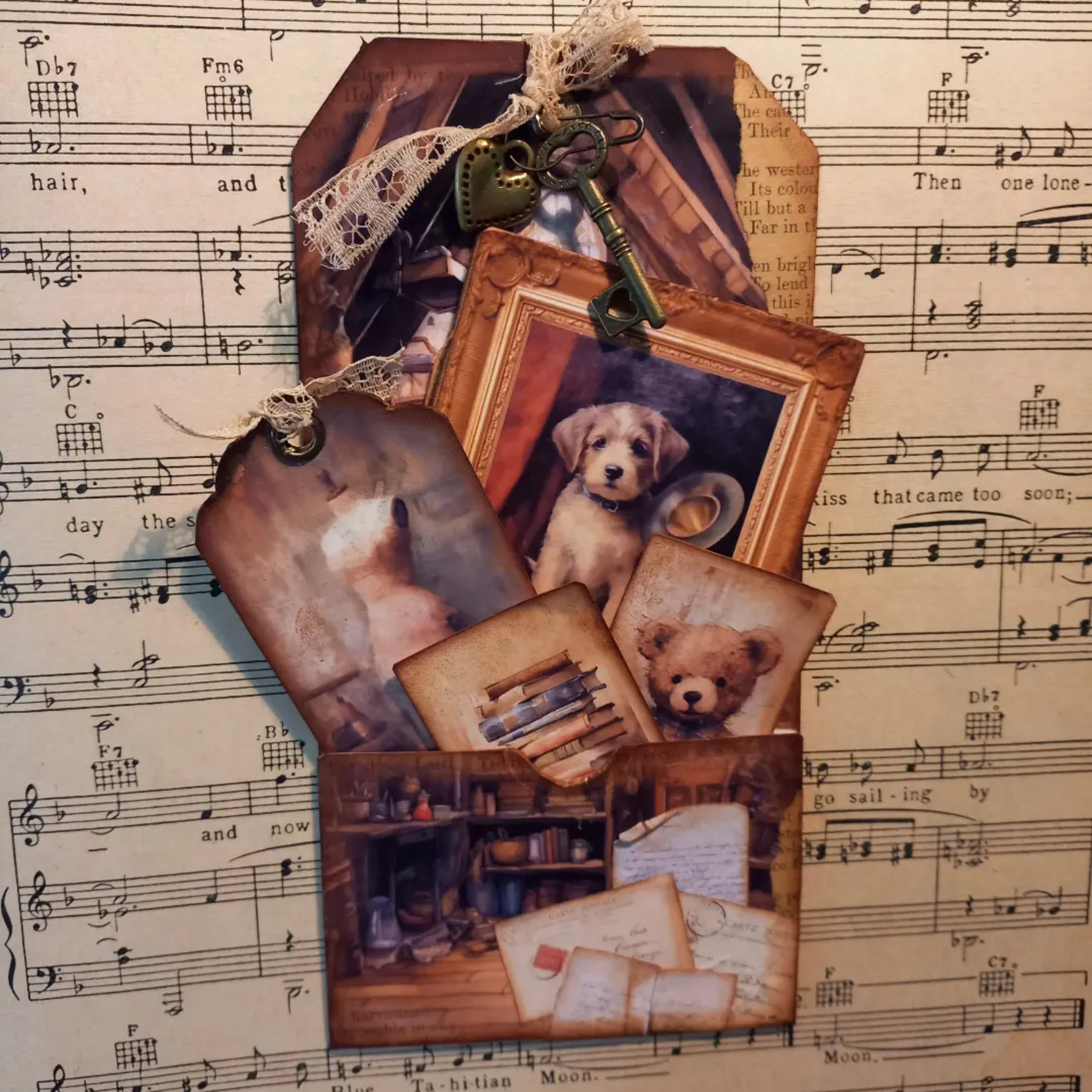This week’s #50StackChallenge4 prompts were GRANDMA’S ATTIC and DOG. I decided to create a Pocket Tag and a Mini Notebook.