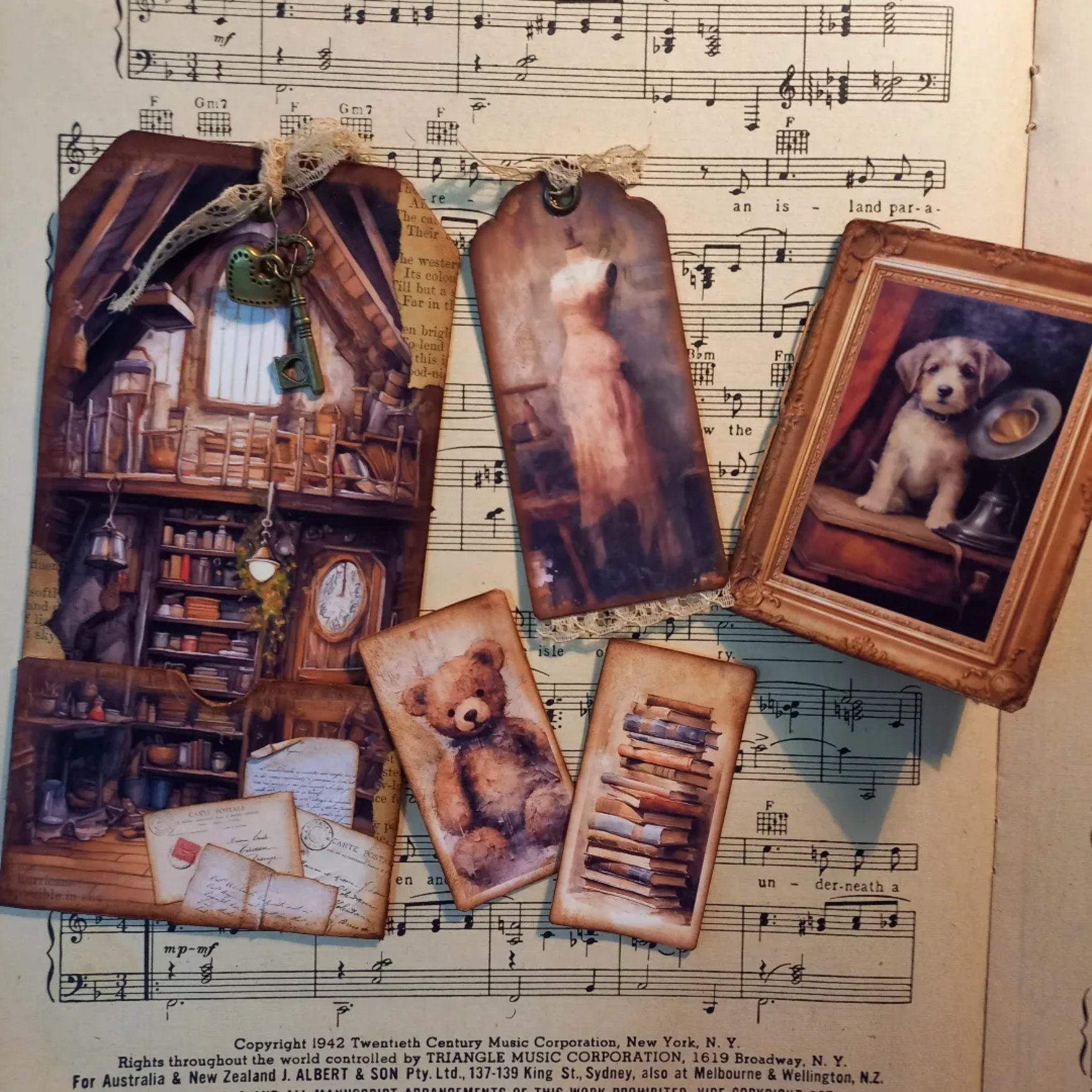 - For the Grandma’s Attic prompt, I crafted a small tag and tea card heirlooms.