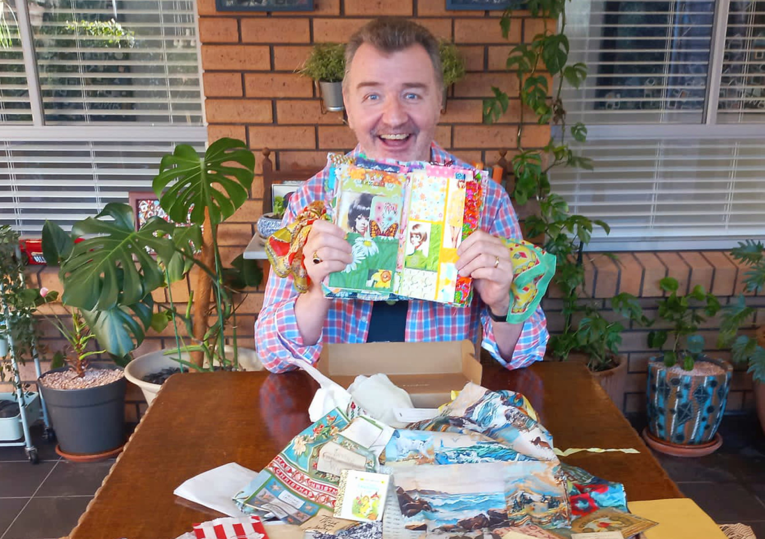 OMG, can you believe what I received today from my dear friend Jenny @joey143jenny from YouTube’s ‘Joey & Jenny’s Little Yellow House‘. The parcel was jammed pack full of all the goodies I moan about not having – wonderful fabric designed by Jenny’s sister Cathe Holden, Tim Holtz ephemera, a precious miniature Little Golden Book amongst the endless papers and treasures, but pride of place was the beautiful ‘Groovy’ journal made by Jenny on her YouTube channel – that one broke my heart, I will treasure it always. Thank you Jenny, “You’re a pal and a confidante” 🥰. Bless you and Joey 🙏❤️❤️❤️