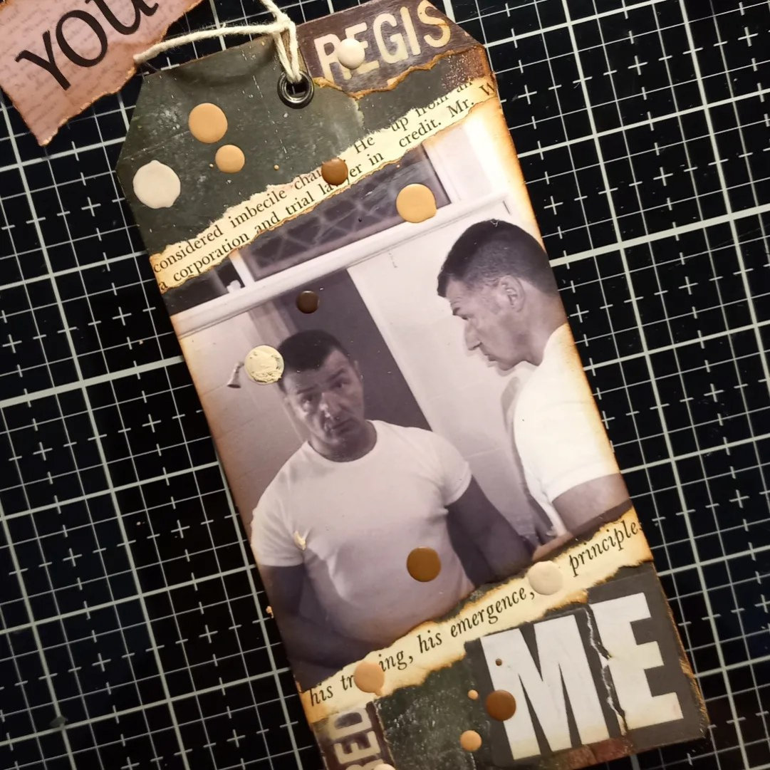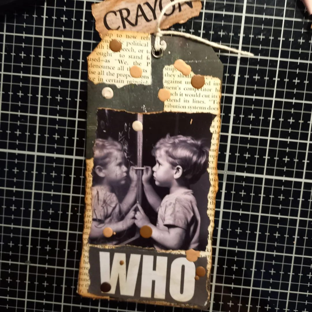 I struggled this week with the prompts! I found these Crayola crayons called “Colors of the World” skin tones, which I thought was a brilliant idea. 😀. So I melted them with a lighter and done ‘wax blobs’, I burnt my fingers – as I would 🤕. I had the great pic of the kid drawing on the mirror with his crayons, and this one of me in a mirror circa 2009 🤣🤣. Thanks to Amy @craftycat72 for challenging us this week with challenging prompts. The weekend draws closer – have a great one – luvs ya, Joey 💛🤎🩷🤍