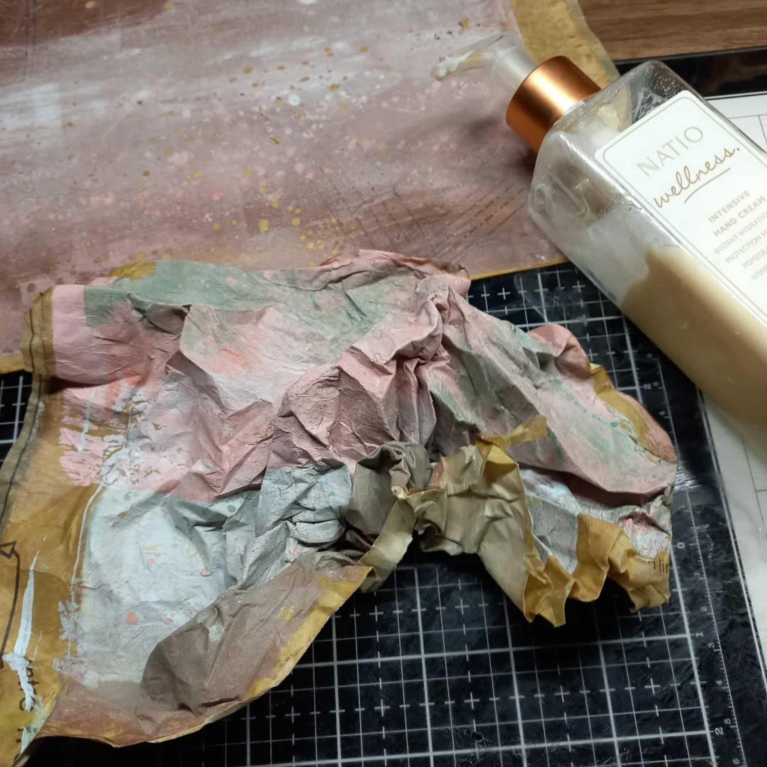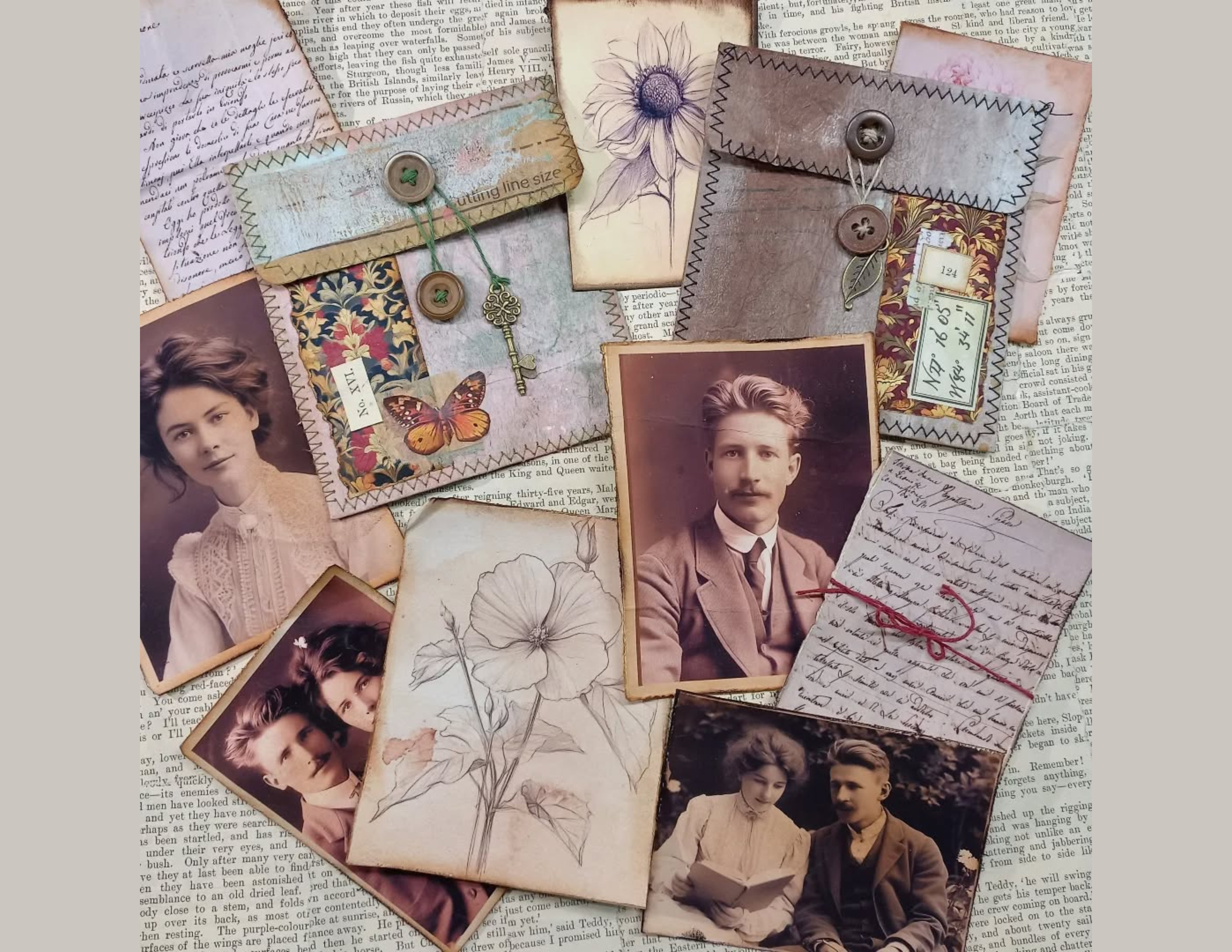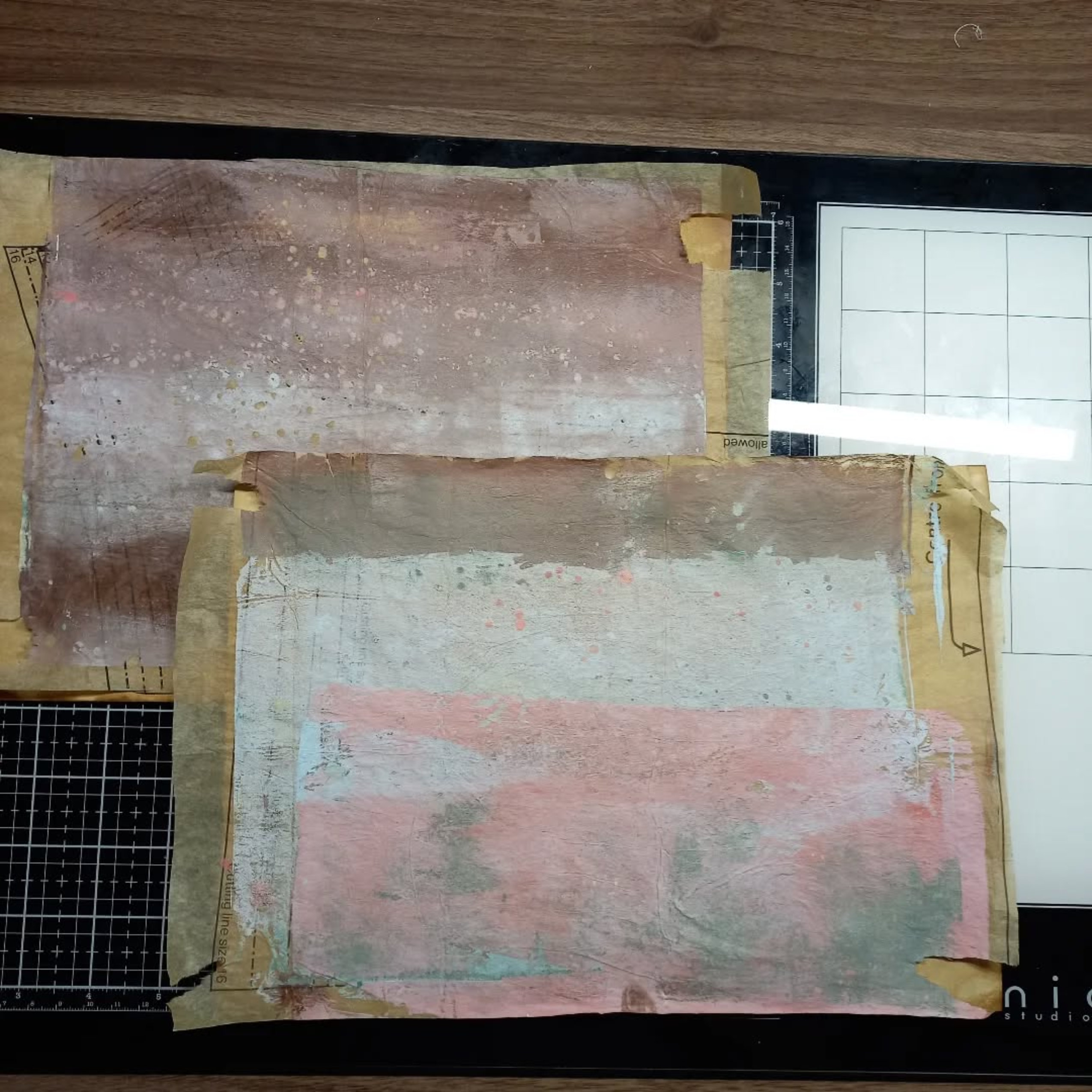 I made these ephemera pouches from gelli printed sewing pattern paper and momigami . It’s like sewing fabric. I’m building a story through ephemera for my journal about a group of Edwardian Bohemian friends set in the summer of 1914. These two were lovers, a writer and an artist. Their last summer before war came.